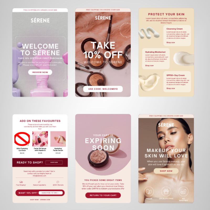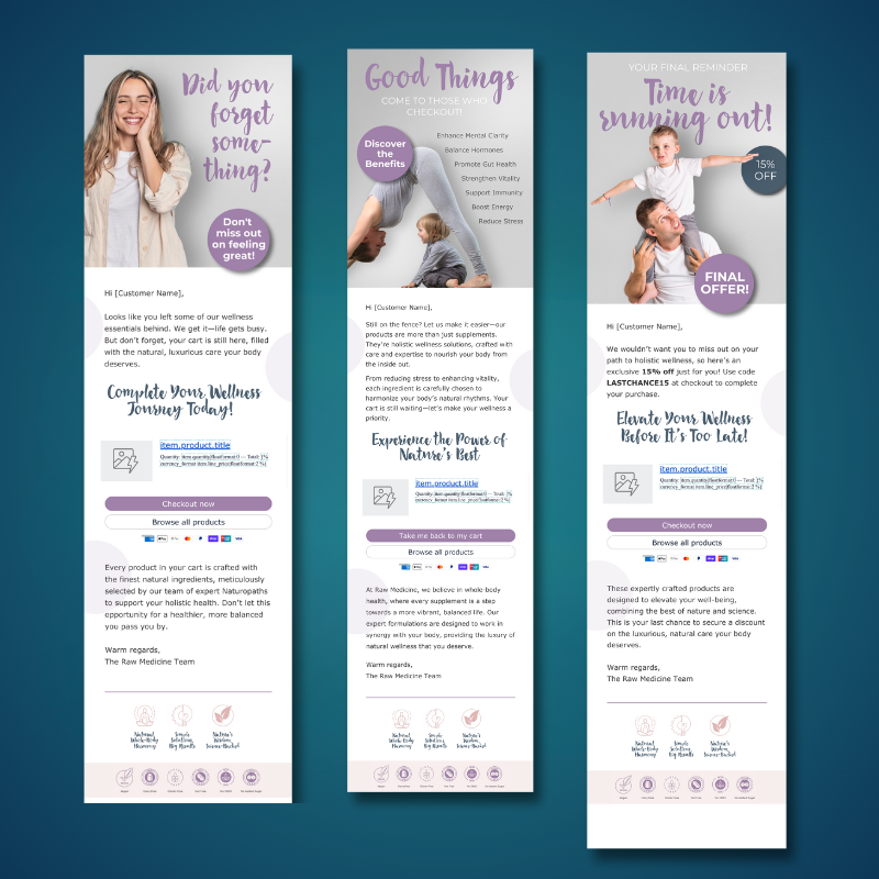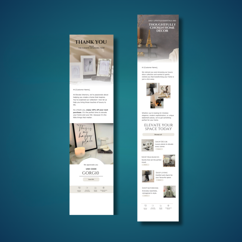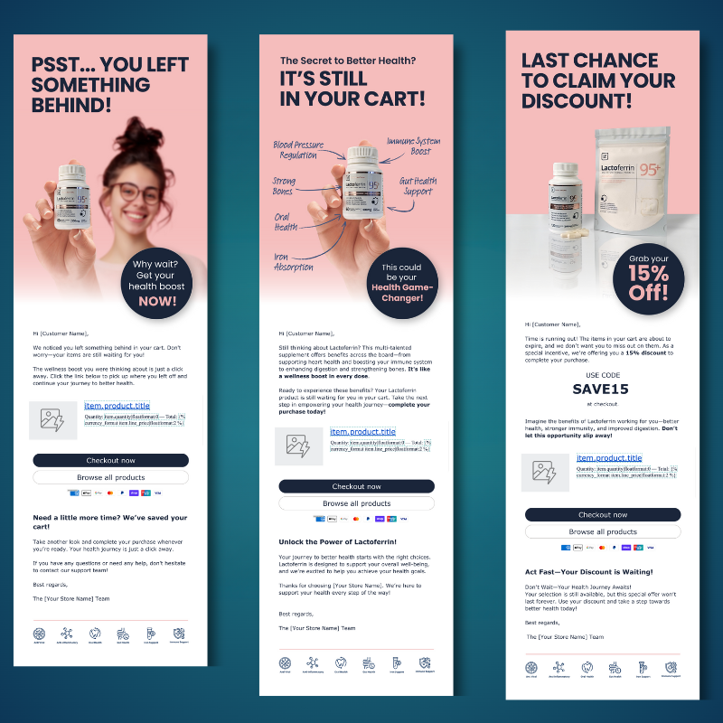 - Abandoned Cart Flow: Recover lost sales with compelling reminders.